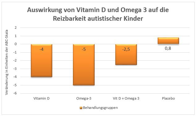 Die Autoren interpretieren die Resultate folgendermaßen: Die Ergebnisse deuten darauf hin, dass Vitamin D und Omega-3-Fettsäuren die Reizbarkeits- und Hyperaktivitätssymptome bei Kindern mit ASS verringerten (4).