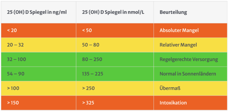 Tabelle 1 Vitamin D-Spiegel im Blut und ihre Beurteilung